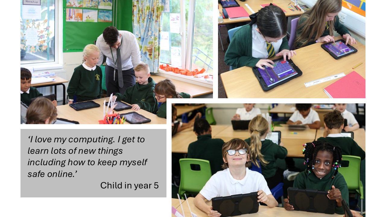 At St Joseph’s, we provide children with a rich, deep learning experiences that balance all aspects of computing. Technology is a big part of our everyday lives so it is important that children are taught the skills to be able to be safe and effective in today’s modern technological world.