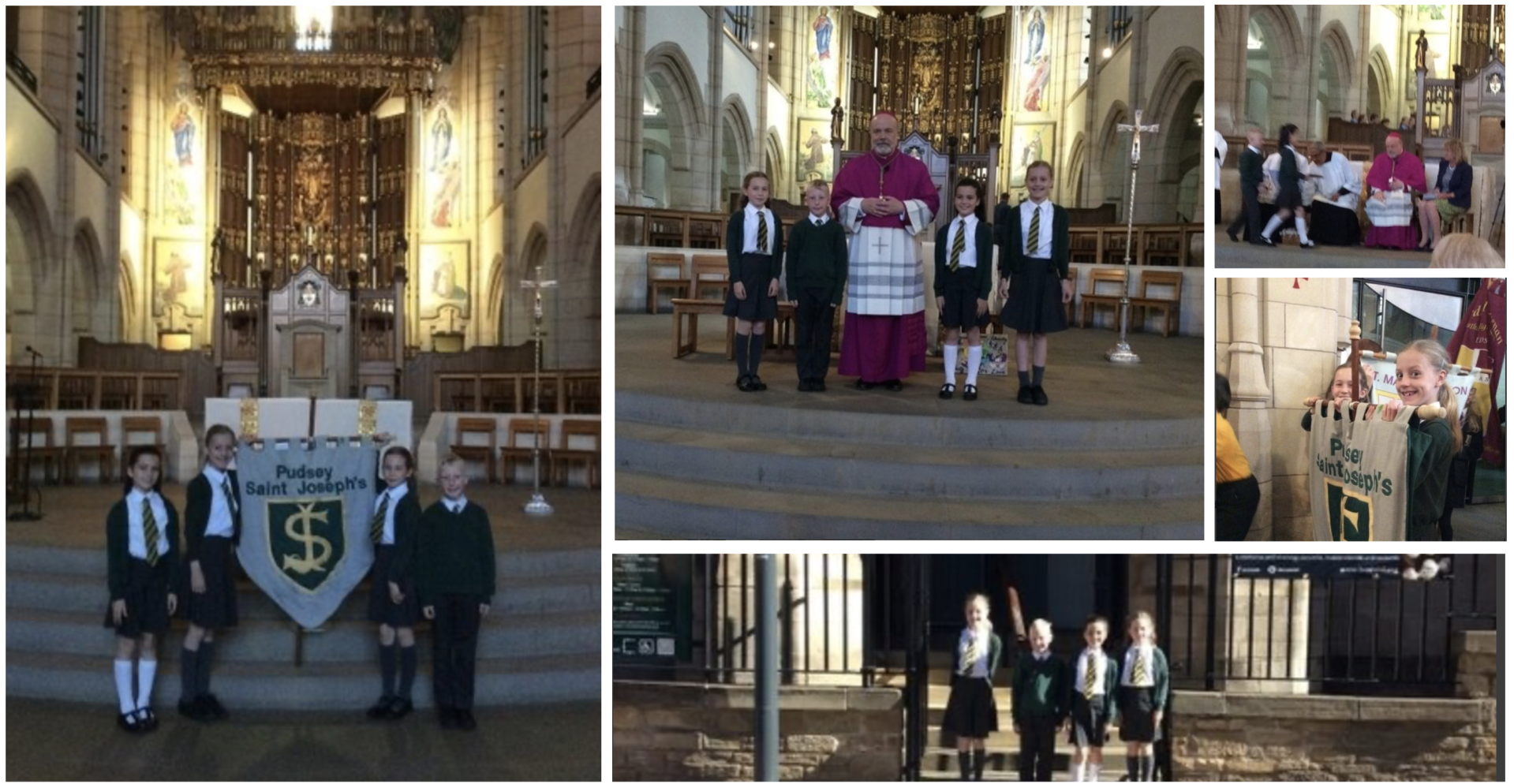 Four representatives from the Mini Vinnies were chosen to deliver the money raised for the Good Shepherd Appeal to Bishop Marcus in a special mass at Leeds Cathedral.