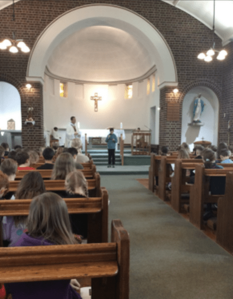St Joseph's Day KS2 went to mass to celebrate our school￿s Feast Day. This was led by year 5 and 6. Reception and KS1 had a service in school.