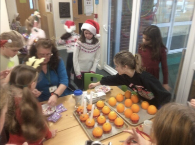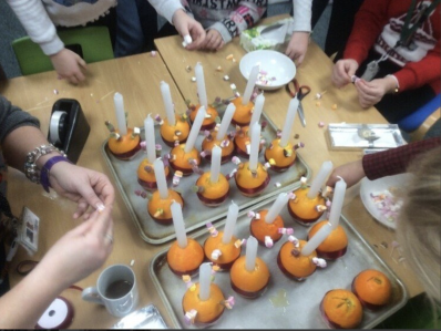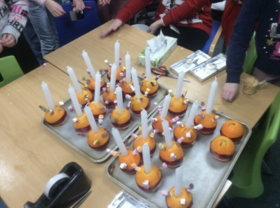 Mini Vinnies making Christingles for the Christingle service