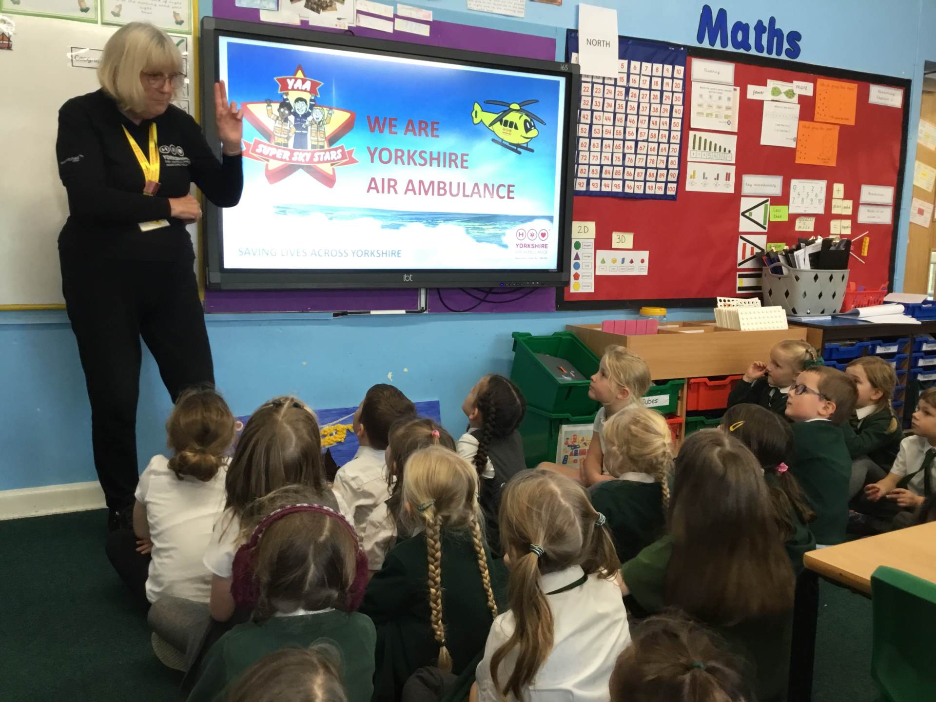 In September, we had a visit from our class charity, The Yorkshire Air Ambulance, telling us about what they do and why our fundraising is so important – we got given flags to colour in and a Henry the Helicopter teddy for our class! We can’t wait to plan some fundraising activities to raise money for such an important cause.