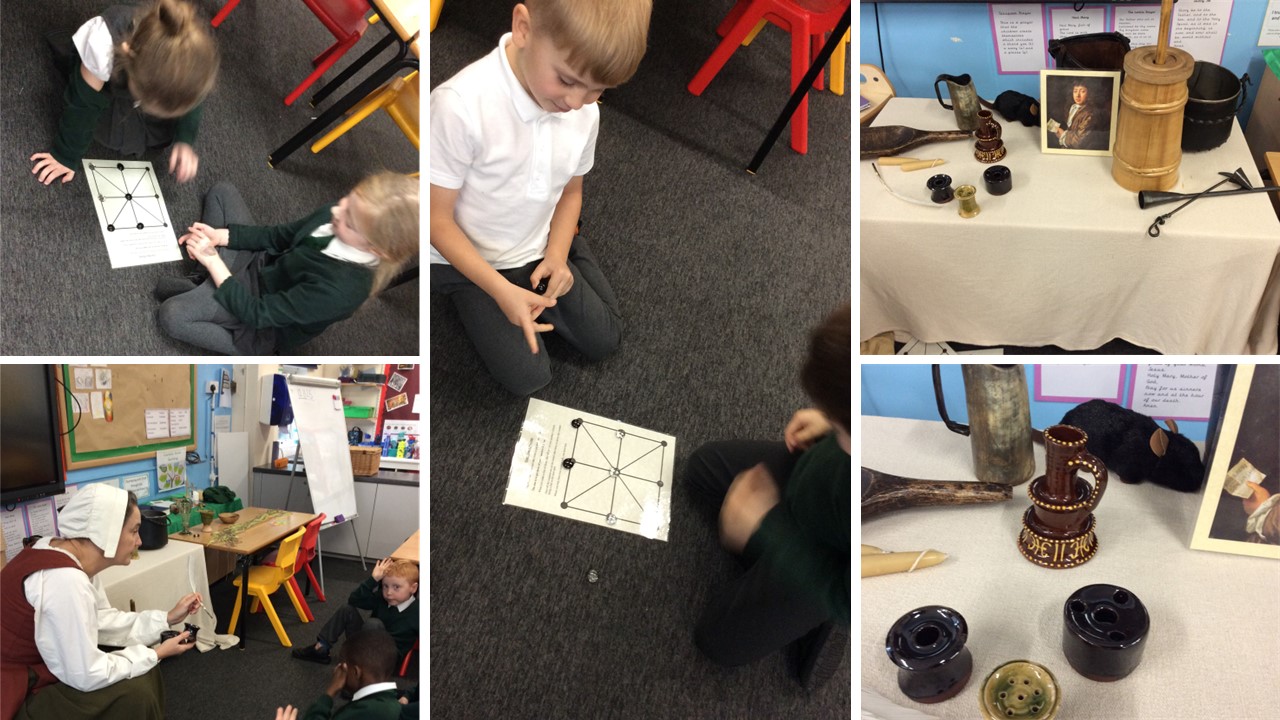 We also used quills and ink to write about the Great Fire of London and played a game similar to three in a row.